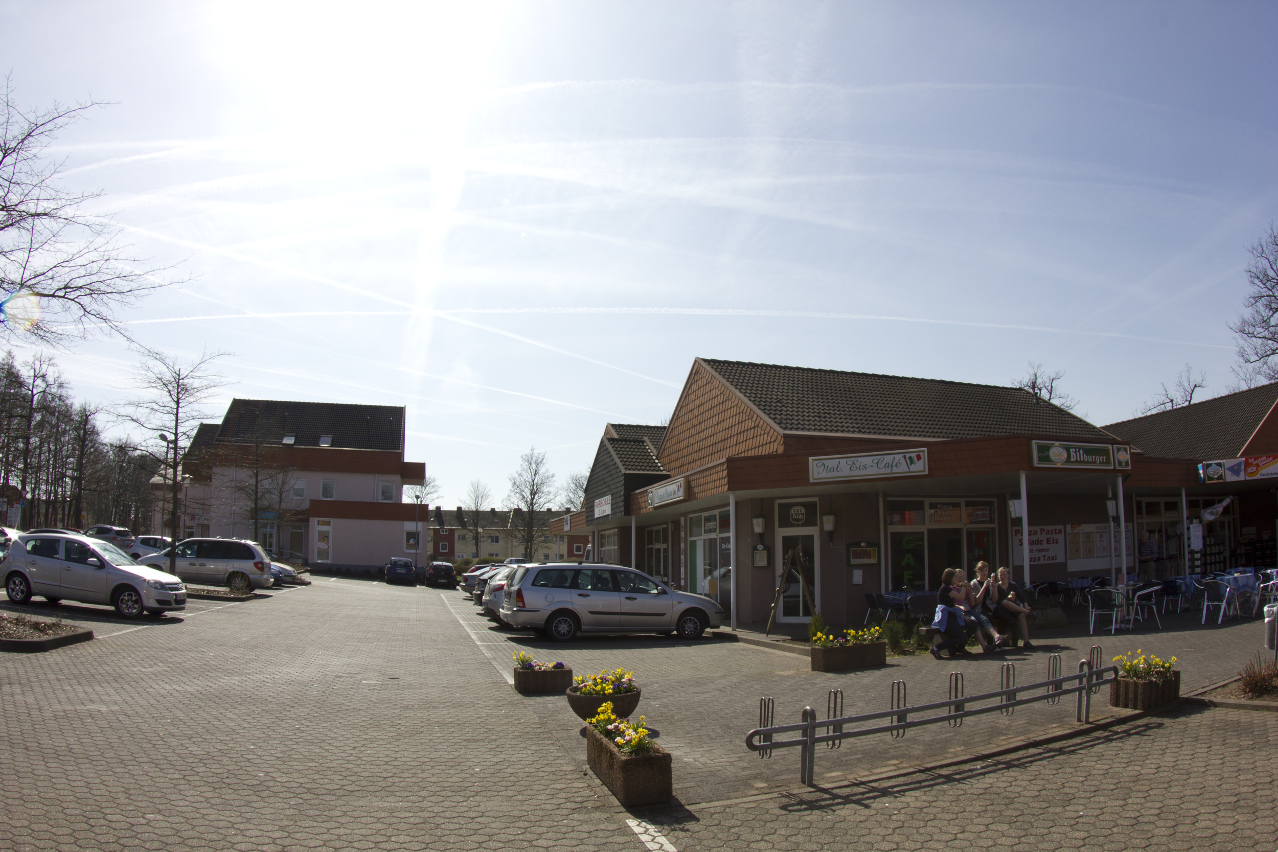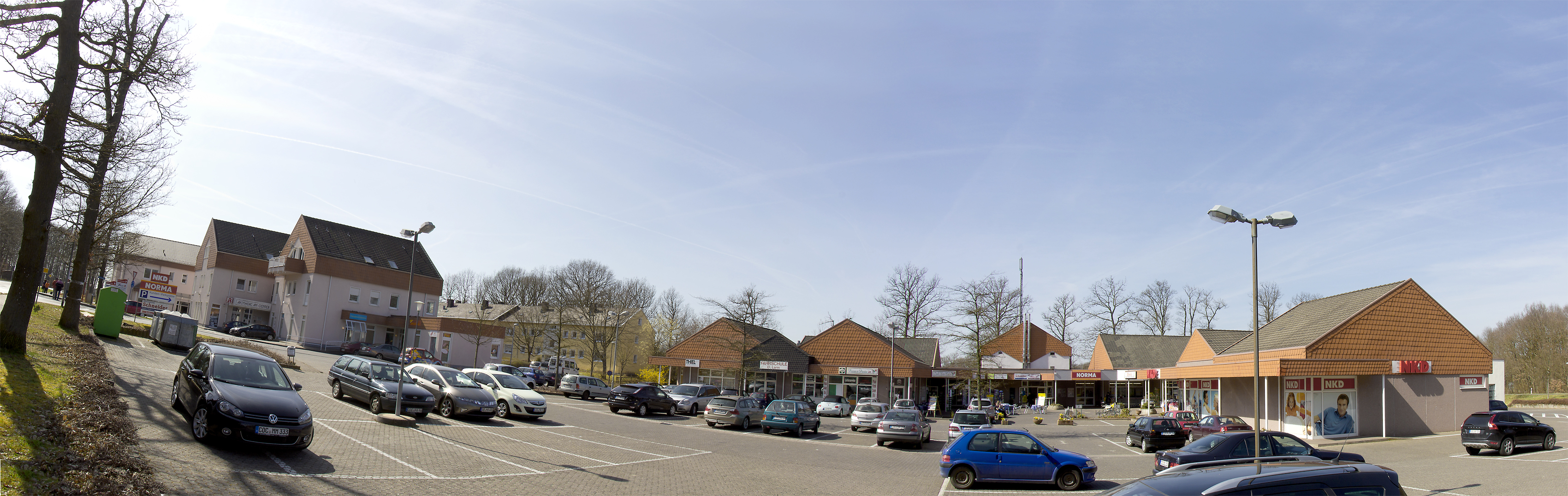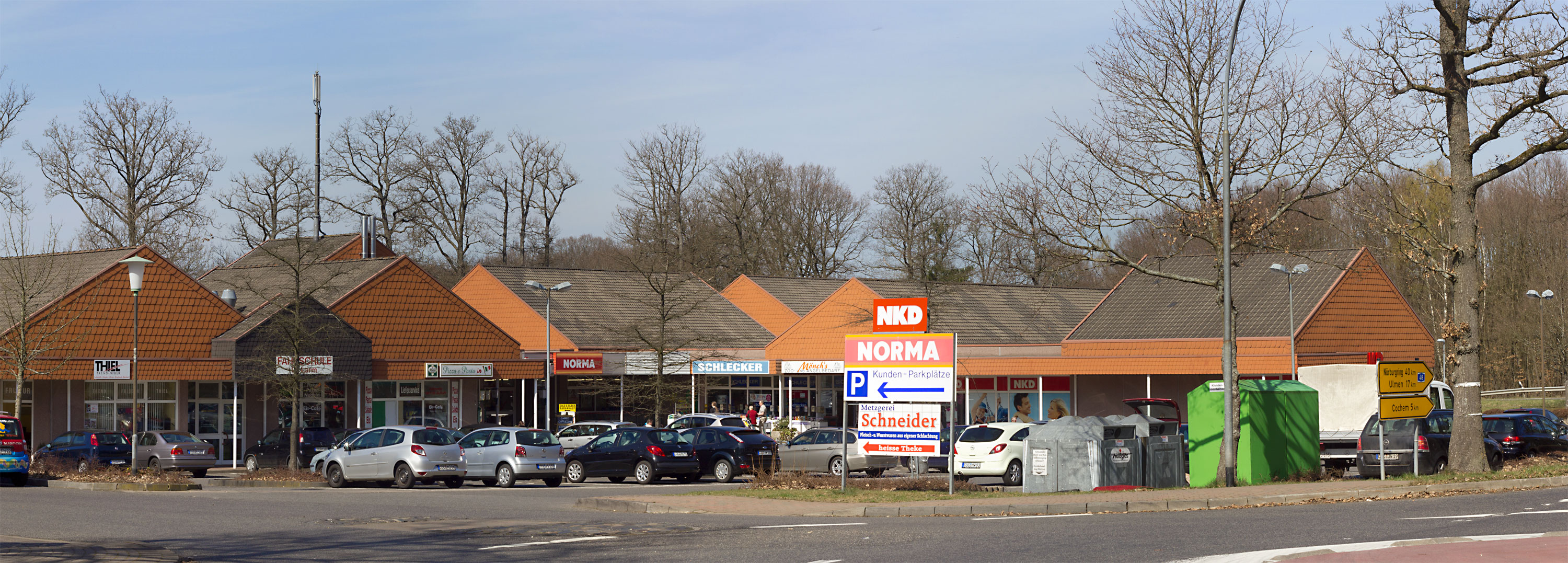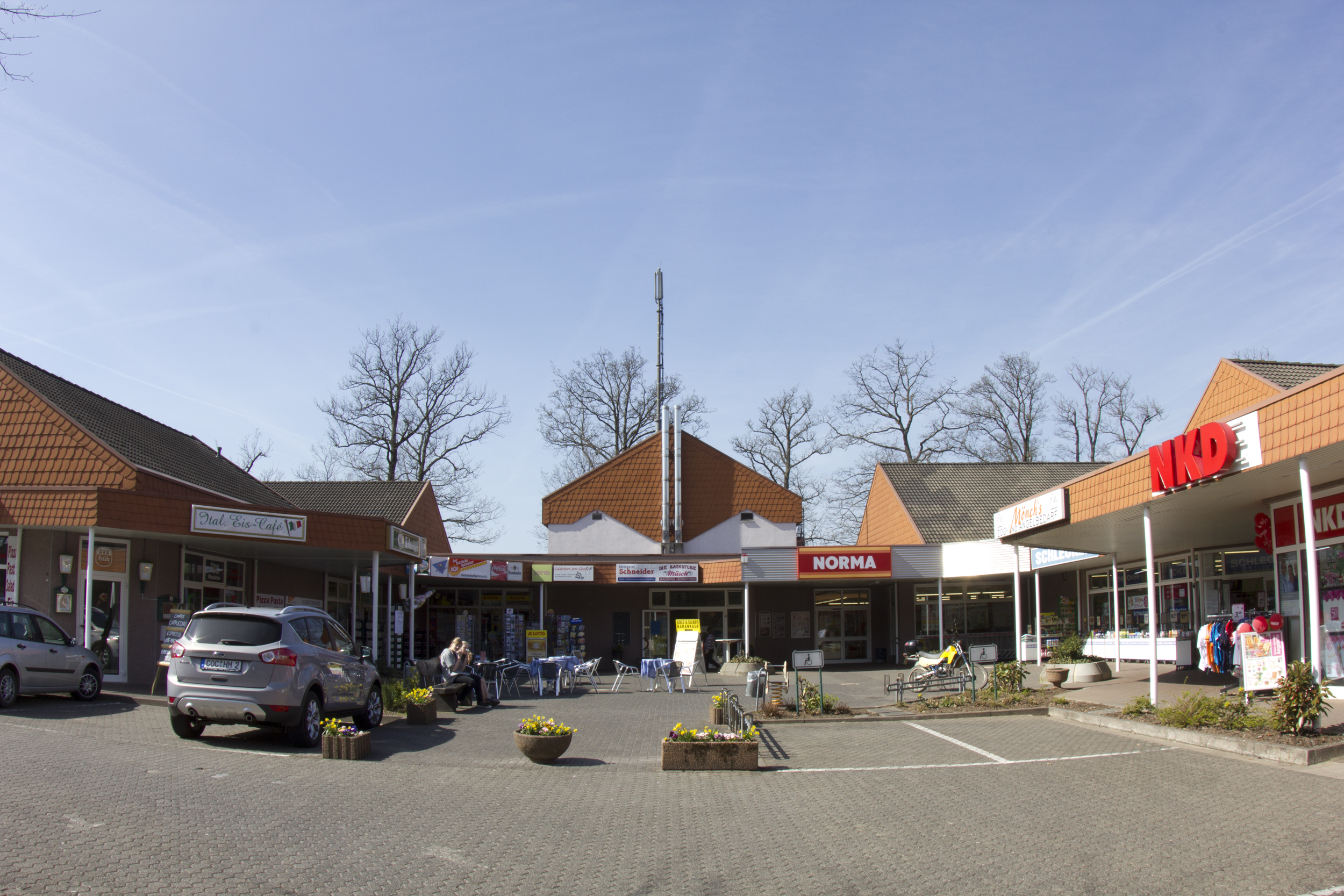 Textilgeschäft, Geschäft für Tierbedarf, Filiale für Auto- und Industrieteile, Bäckerei, Metzgerei mit heißer Theke, Laden für Zeitschriften, Tabakwaren und Toto-Lotto, Getränkemarkt, Eiscafé mit Pizzeria, Fahrschule, und Friseur. Im angrenzenden Gebäude praktizieren ein prakt. Arzt, ein Zahnarzt, ein Rechtsanwalt und ein Masseur. Darüber hinaus befindet sich im gleichen Gebäude eine Apotheke und ein Solarium. In einem weiteren Nebengebäude wird ein Blumengeschäft betrieben.